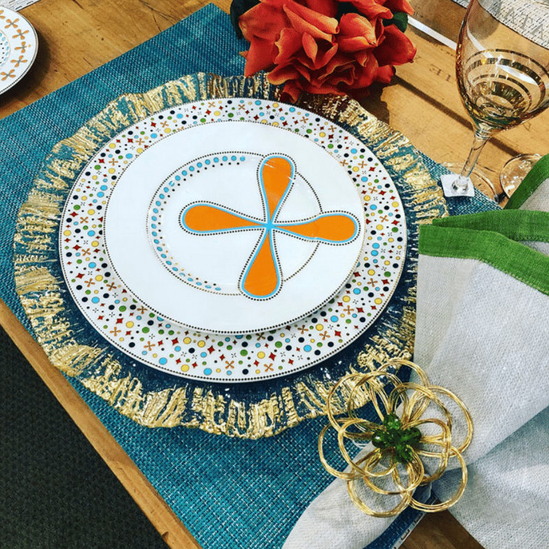 The Jubilee Collection is the perfect touch of artisan elegance for everyday and special occasions. Set in a vivid palette of color to add eclectic style to your table. This fanciful pattern is trimmed with a touch of gold; celebrate life at the table with The Jubilee Collection.